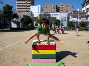 粗大運動とは 、微細運動と対になって使われる言葉で、 手足胴の大きな運動をいいます。立つことも含めて、立つまでの赤ちゃん ・小さい子どもがおこなう手足を動かす、腹這いになる、這う、這って越える等の運動を指します。また、歩行完成以後の乳児の粗大運動については、主として機能練習遊びや戸外遊びなどがあります。