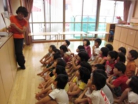 生まれたての赤ちゃんは、身体の真正面からあやされることを好みます。また、人間の目に反応して「笑顔」をつくるのも人間の赤ちゃんならではです。0歳から子どもと真正面に向き合い、静かにやさしく、目を見て話しかけそして子どもの言葉に耳を傾けることを大切にしています。感性は静けさの中から生まれるといいます。一方的に流れ込んでくるテレビではなく、気持ちを通い合わせながら肉声で読んであげることのできる絵本を大切にしたいと思います。絵本は、親子のつながりを深め、イメージや創造力を豊かにします。また、みんなと一緒に歌う喜びや楽しさ、みんなの中で自分の思いを描き、語る力を、丁寧にどの子にも大切に育てていきたいと思います。